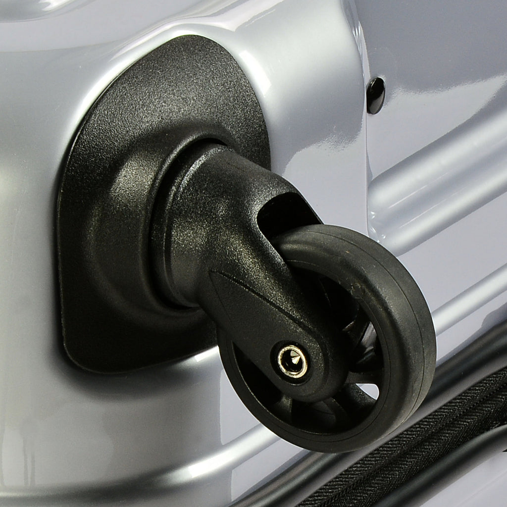 Um eine einheitliche Höhe zu erhalten und erhöhten Verschleiß zu vermeiden, wird empfohlen, alle Rollen des Koffers gleichzeitig zu ersetzen. Falls jedoch nur ein Rolle ersetzt werden muss, bieten wir separate Rollen mit zwei Ausrichtungen an, die perfekt auf das Gehäuse passen.