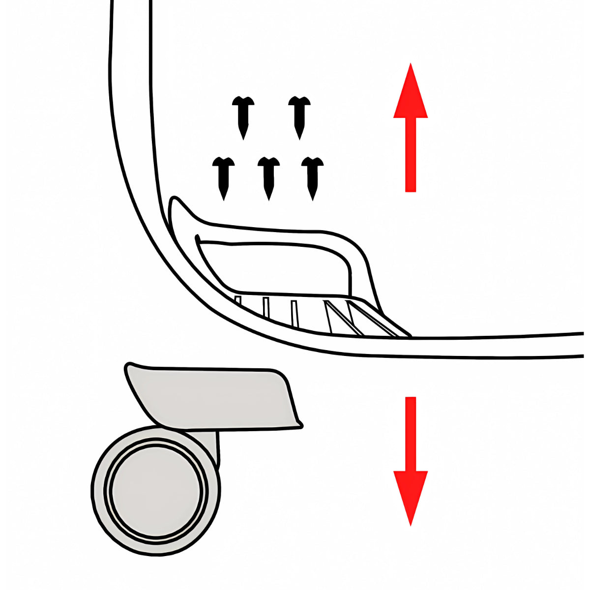 Successivamente, puoi attaccare il ricambio Ruote reinserendo le viti attraverso il supporto Ruote all'interno della valigia.