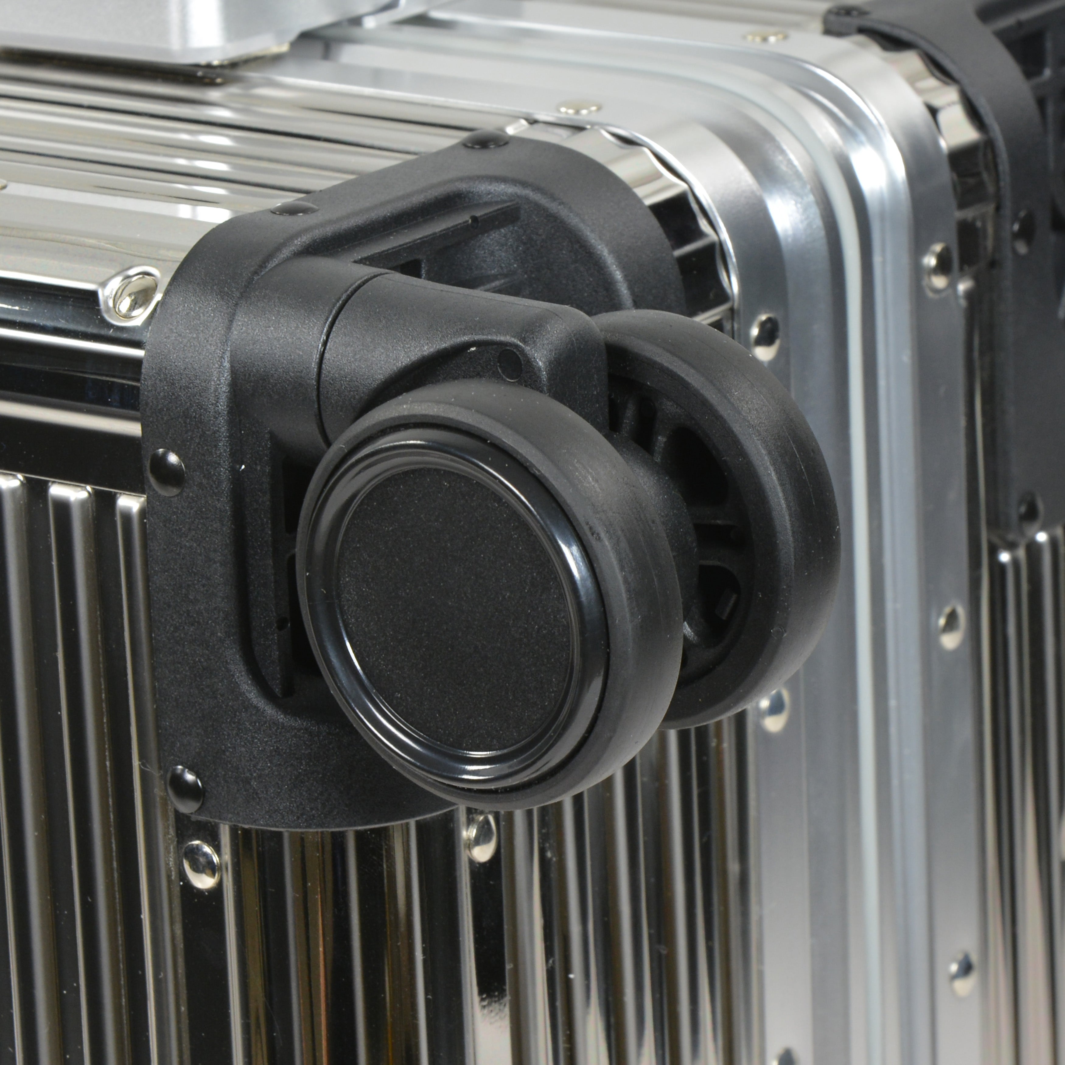 Valigia Ruote sono fissati alla scocca della valigia, nella maggior parte dei casi, mediante viti. Come si può vedere dall'immagine, la Ruote custodia in questo caso non presenta segni o fissaggi dall'esterno. Le viti sono accessibili aprendo la fodera all'interno della valigia.