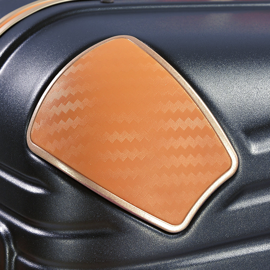 I cappucci delle maniglie, i proteggi angoli, i piedini in gomma, i paraurti e altre parti sono fissati alla valigia con viti o possono essere semplicemente pressati in posizione.